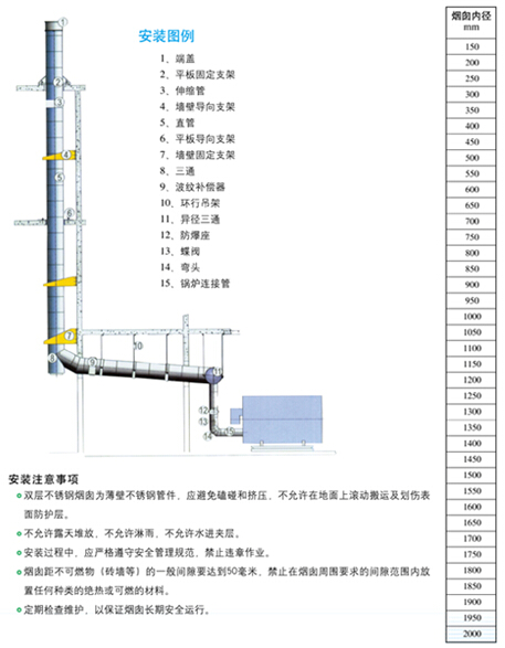 其設(shè)計(jì)、制造、檢驗(yàn)各道程序嚴(yán)格按照國(guó)標(biāo)GB50051-2013《煙囪設(shè)計(jì)規(guī)范》、CJ/T288-2008《預(yù)制雙層不銹鋼煙道及煙囪》和國(guó)標(biāo)公認(rèn)的BSI-BS*4076:89《Specification for Steel Chimneys》英國(guó)國(guó)家標(biāo)準(zhǔn)進(jìn)行制作。